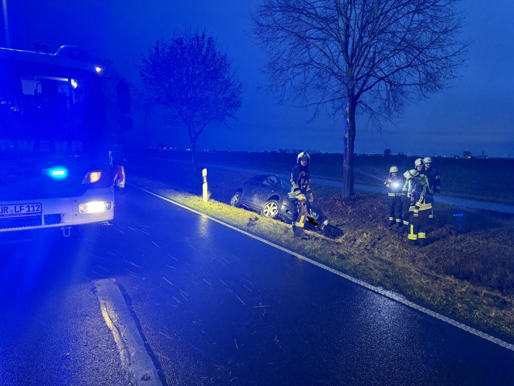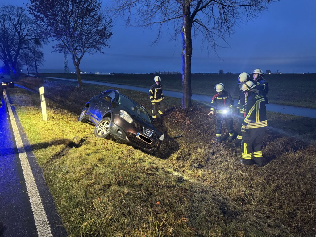 Aufgrund schlechter Witterungsverhältnisse und nicht angepasster Fahrweise, kam am 14.11.2025 eine Autofahrerin auf der B108 zwischen Waren (Müritz) und Vielist von der Fahrbahn ab und landete im Straßengraben. Glücklicherweise ist der Fahrerin nichts passiert. Vor dem Eintreffen von Feuerwehr und dem Rettungsdienst halfen der Verunfallten bereits Ersthelfer aus dem Fahrzeug.