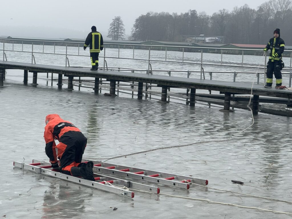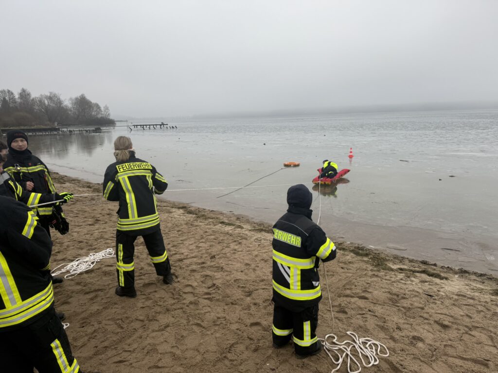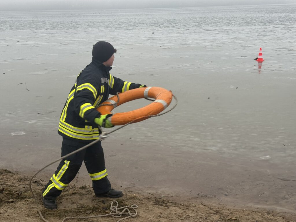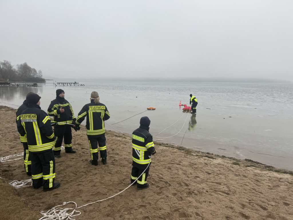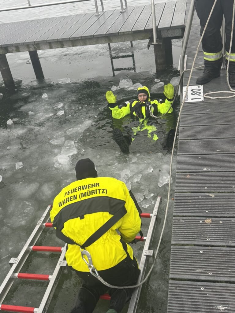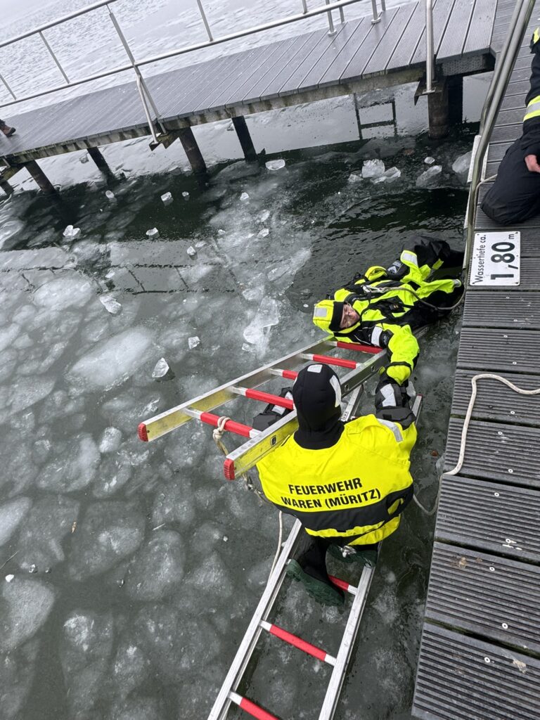 Am Samstag fand die erste Ausbildung der Freiwilligen Feuerwehr Waren (Müritz) im Jahr 2026 statt. Die winterlichen Bedingungen mit vorhandenen Eisflächen boten ideale Voraussetzungen, um das Thema Eisrettung praxisnah zu trainieren.